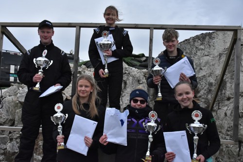 Fra høyre foran: 4 plass Sofie Holten Leifsen (NMK Vikedal), 5 plass Mathea Skjulestad Knusen(KNA Aust-Agder) og 6 plass Linnea Wroldsen (KNA Aust-Agder)